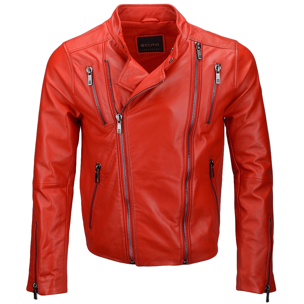Estimo Vegetable Tanned Leather Side Zip Biker Jacket – Red: Zeppelin