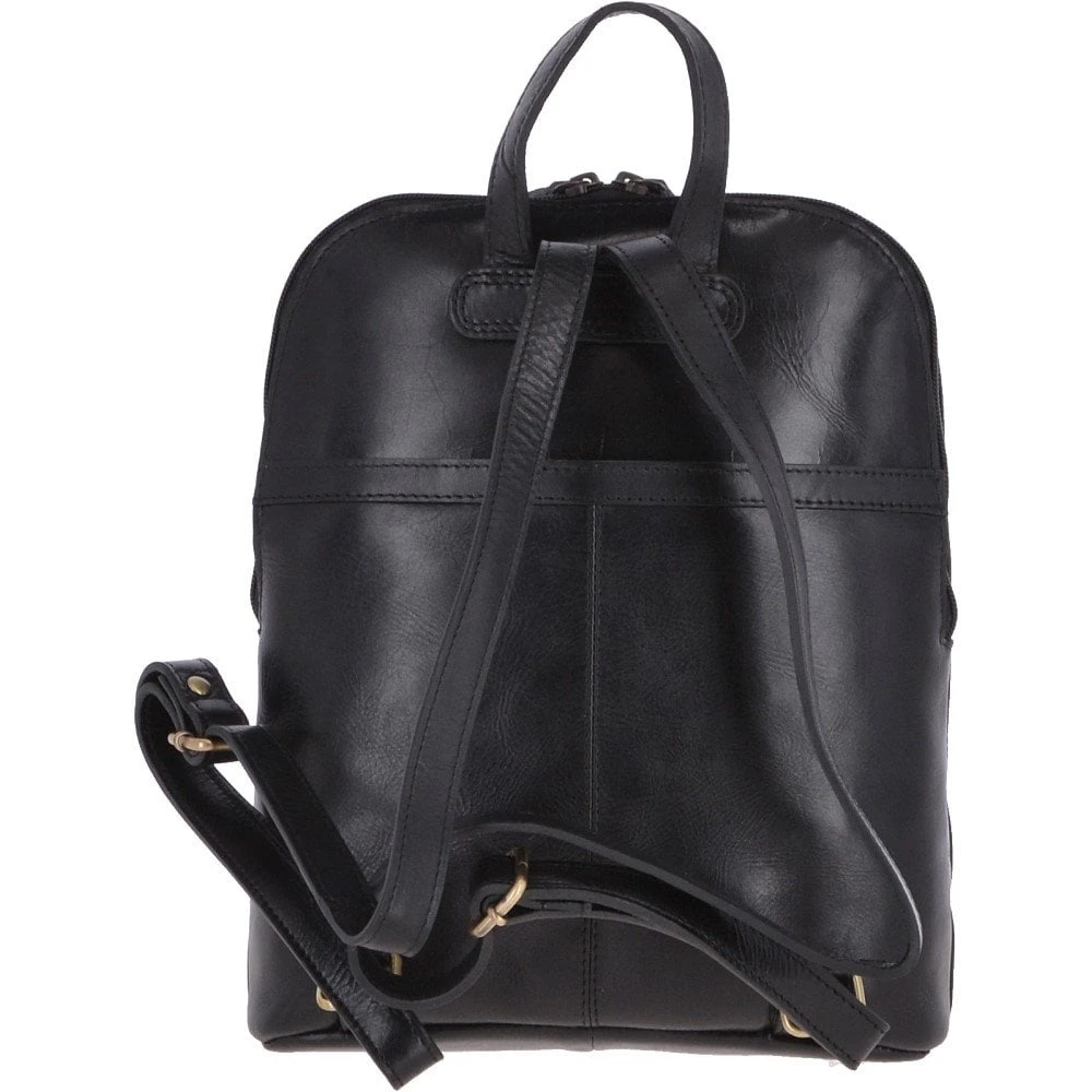 Expect a zip top closure. Two external pockets and a securtiy pocket. Open to find a zip pocket and slip pockets for all your essentials Handcrafted from beautiful veg tan leather this backpack has been masterfully crafted using traditional leather techniques and then coloured in black.