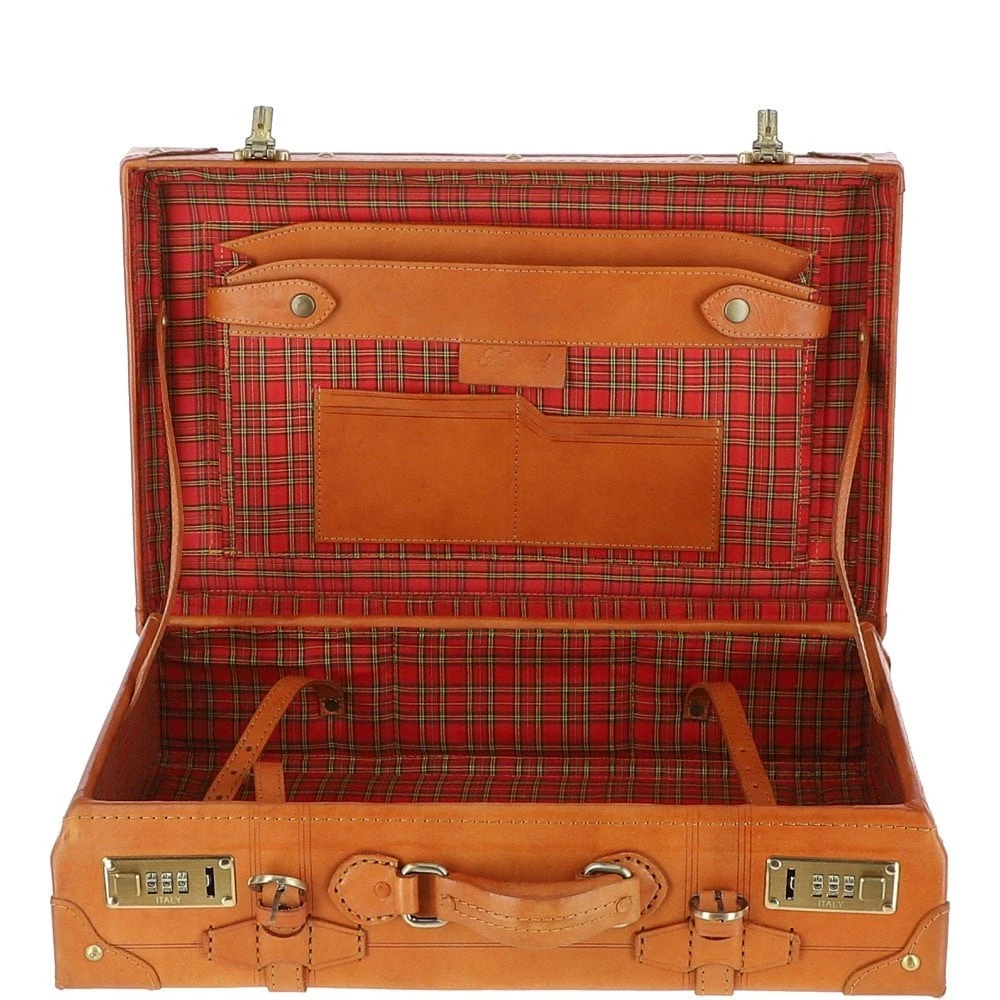Hand-crafted from the finest full-grain leather, the structured design boasts leather-trimmed corners reminiscent of vintage trunk suitcases.