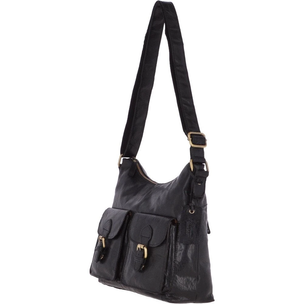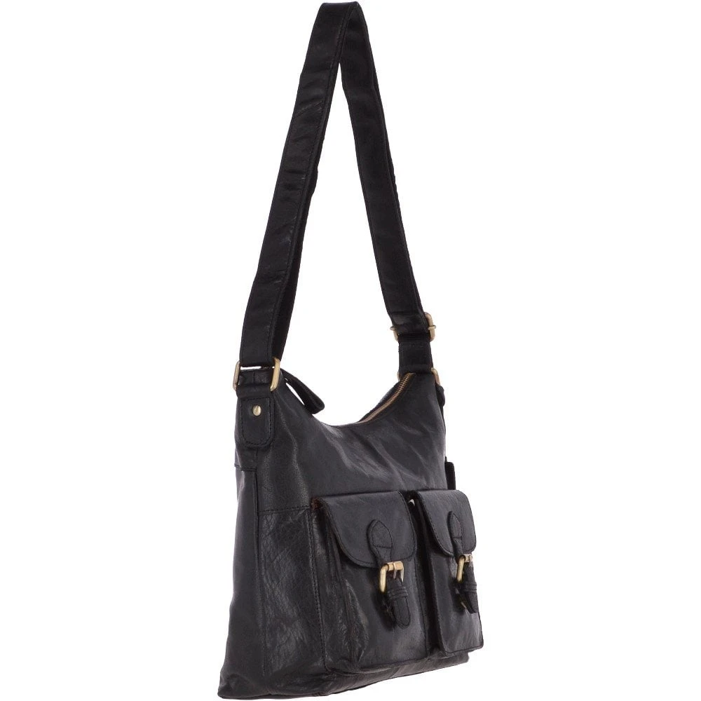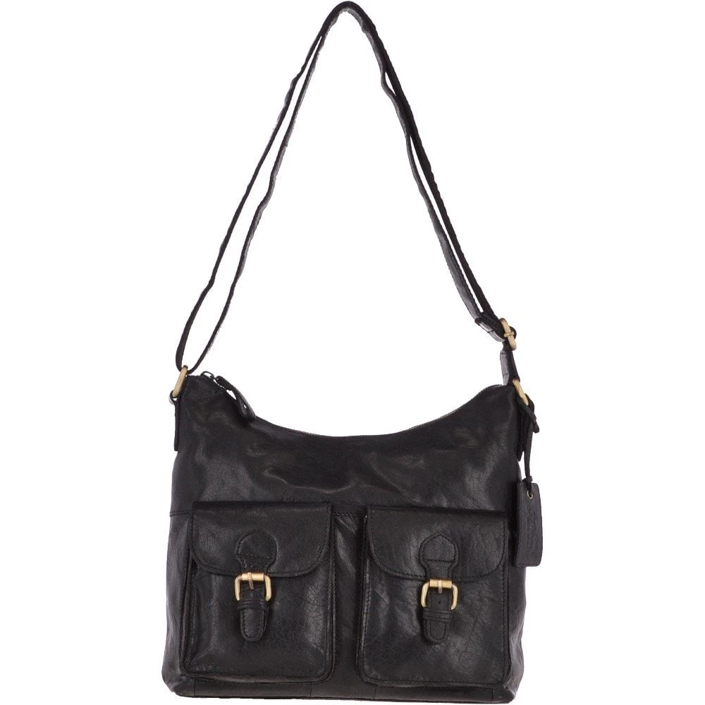 Ashwood Womens Vintage Two Pocket Leather Shoulder Bag Black – G21