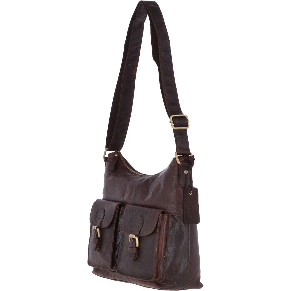 Ashwood Womens Vintage Two Pocket Leather Shoulder Bag Brandy – G21