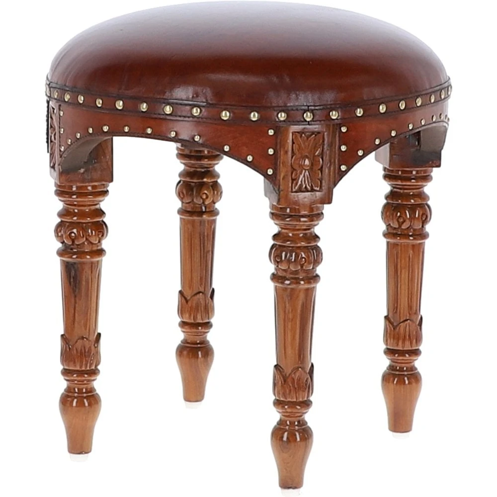 Vintage Wooden Leather Stool Chestnut: TBZ1UCO669
