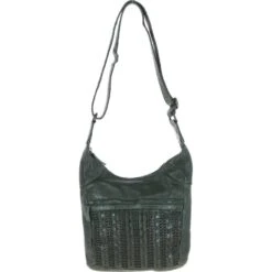 Vintage Woven Leather Crossbody Bag Green: D-92