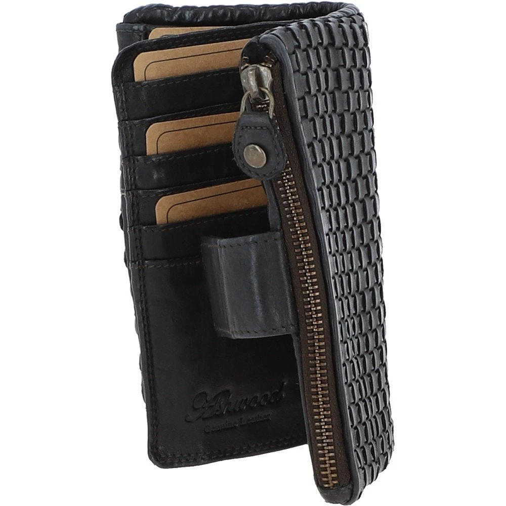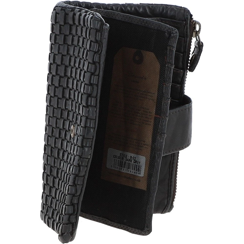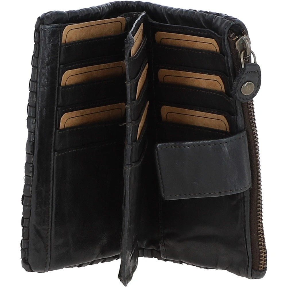 A luxurious vintage wash 18 card purse with a new refined shape. Expect a woven leather detailed front. Open to find a spacious inner compartment, an internal zip pocket and slip pockets for all your essentials.