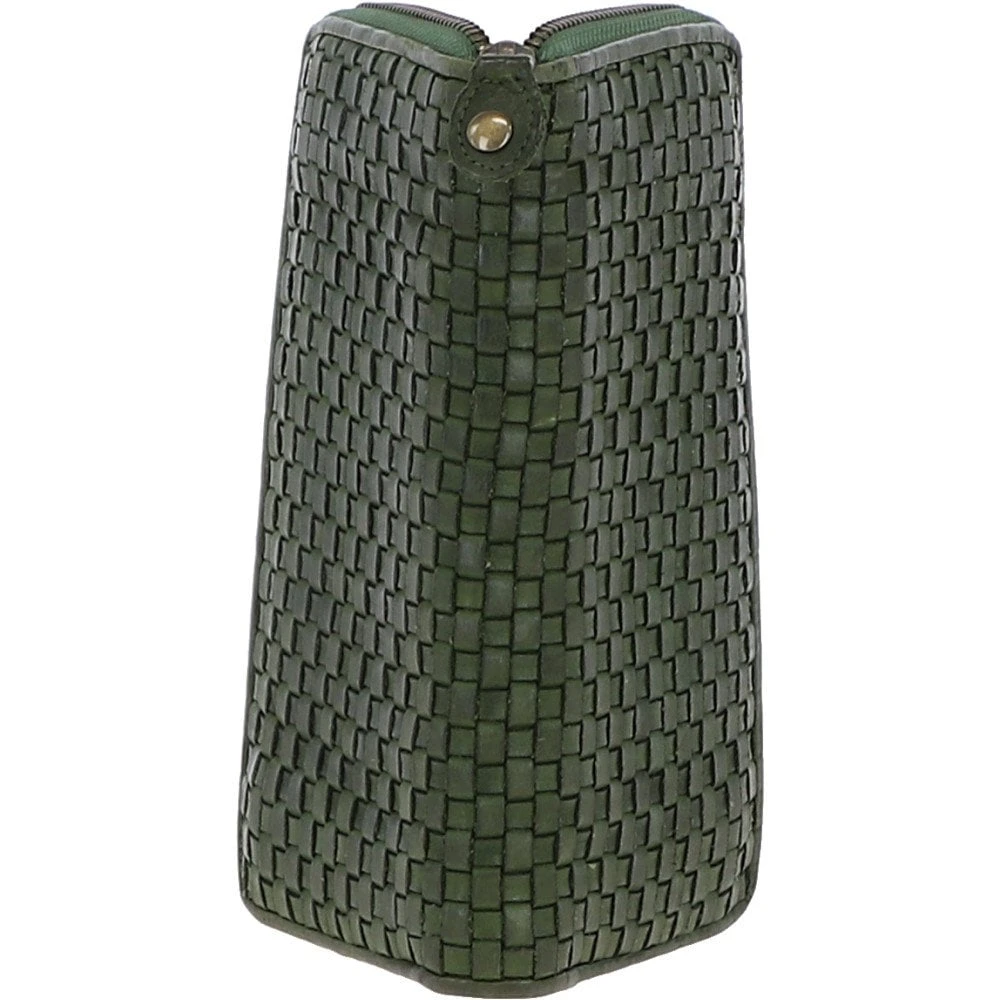 Vintage Woven Leather Zip Around Large 10 Card Coin Note Purse Green : D-81