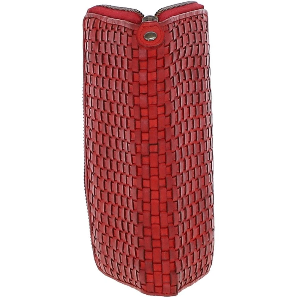 Vintage Woven Leather Zip Around Large 10 Card Coin Note Purse Red : D-81