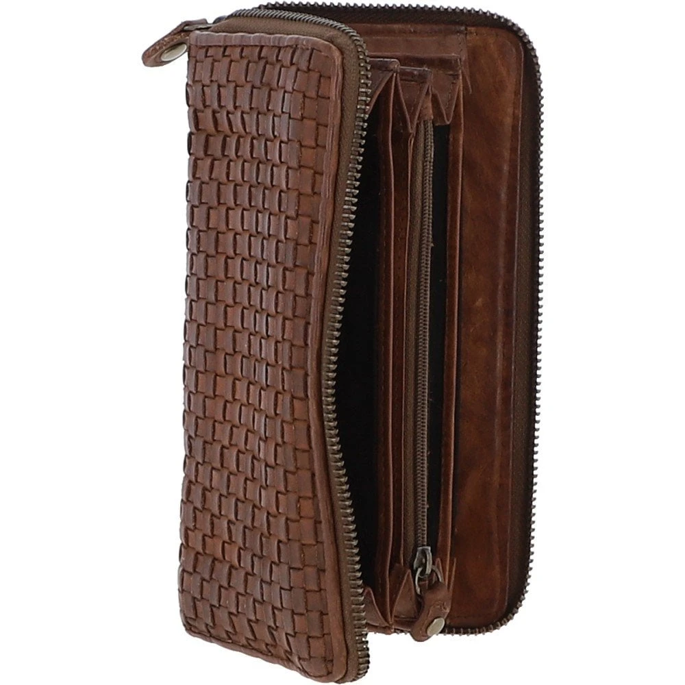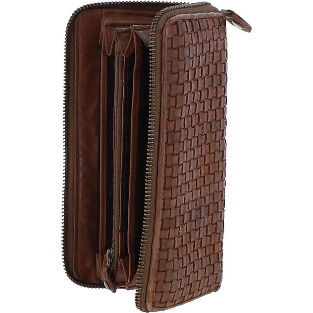 Vintage Woven Leather Zip Around Large 10 Card Coin Note Purse Taupe: D-81