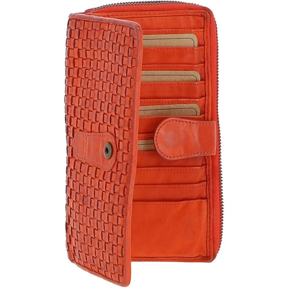 A luxurious vintage wash 22 card purse with a new refined shape. Expect a woven leather detailed front. Open to find spacious inner compartments to hold cards, notes and coins.