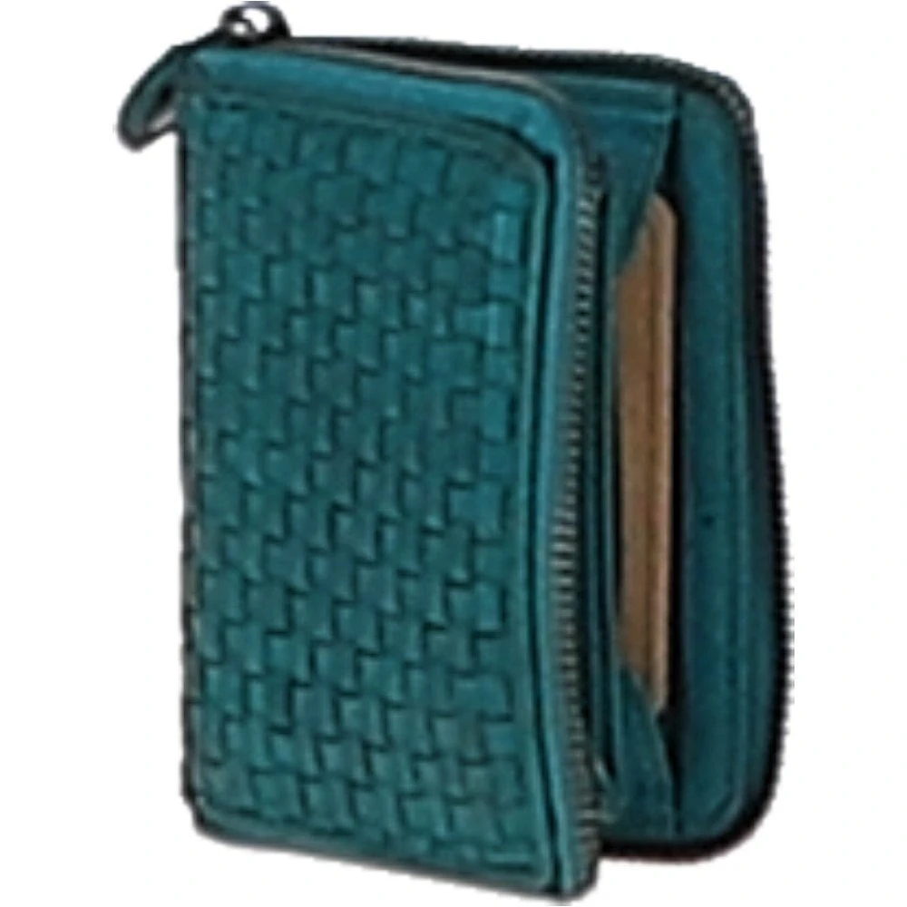 Vintage Woven Leather Zip Around Small 6 Card Coin Purse : D-80