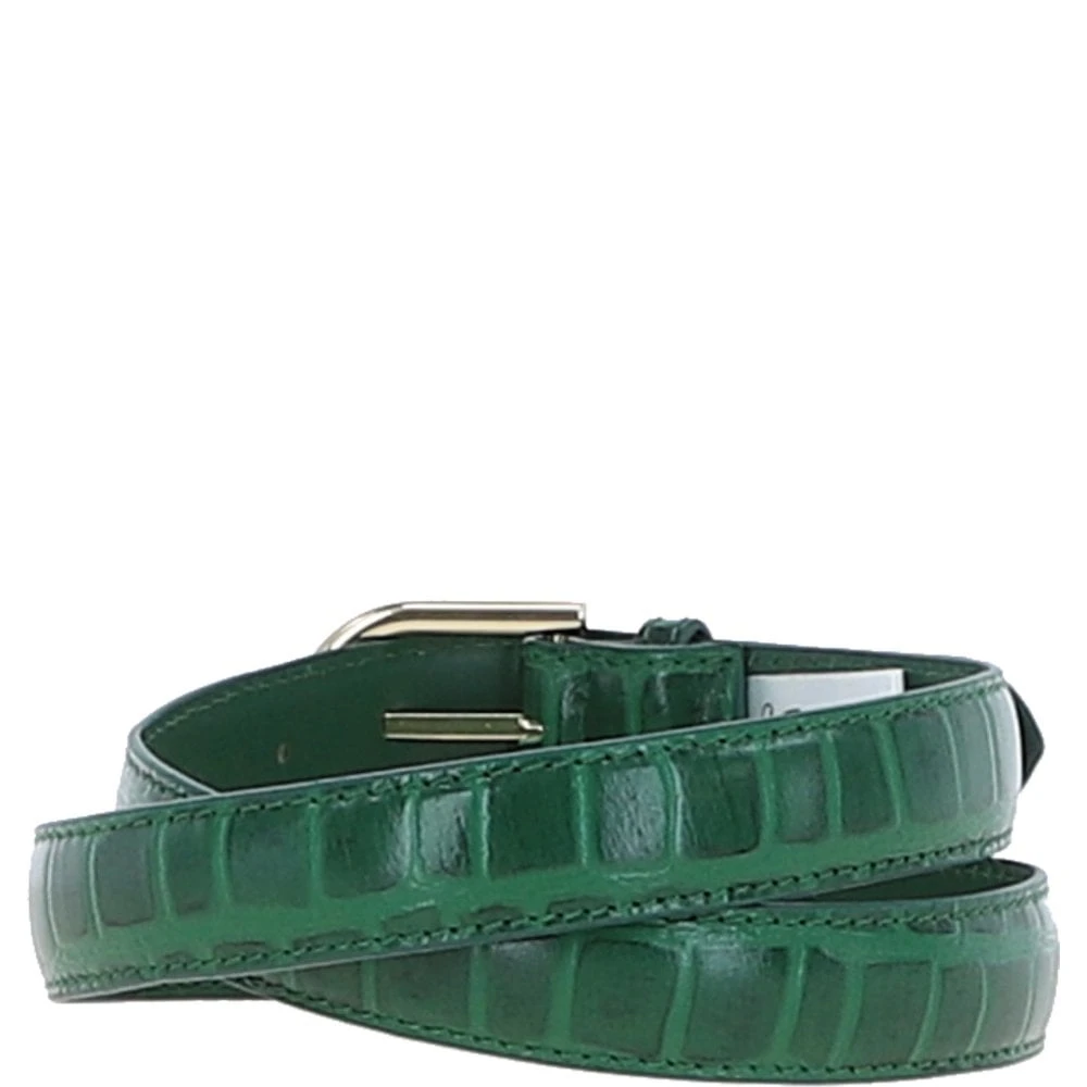 Women’s Croc Print Leather Belt with Gold Metal Pin Buckle Green: C-99