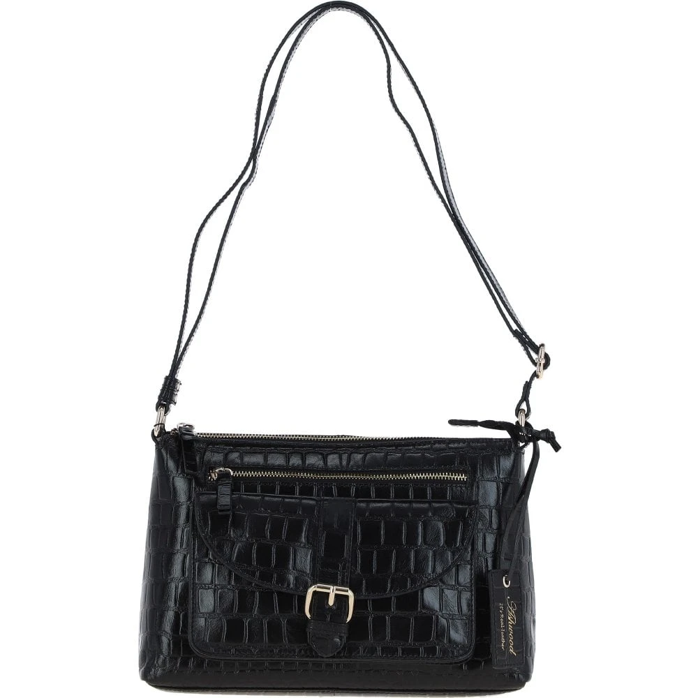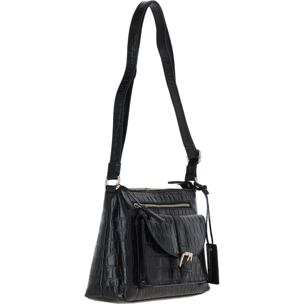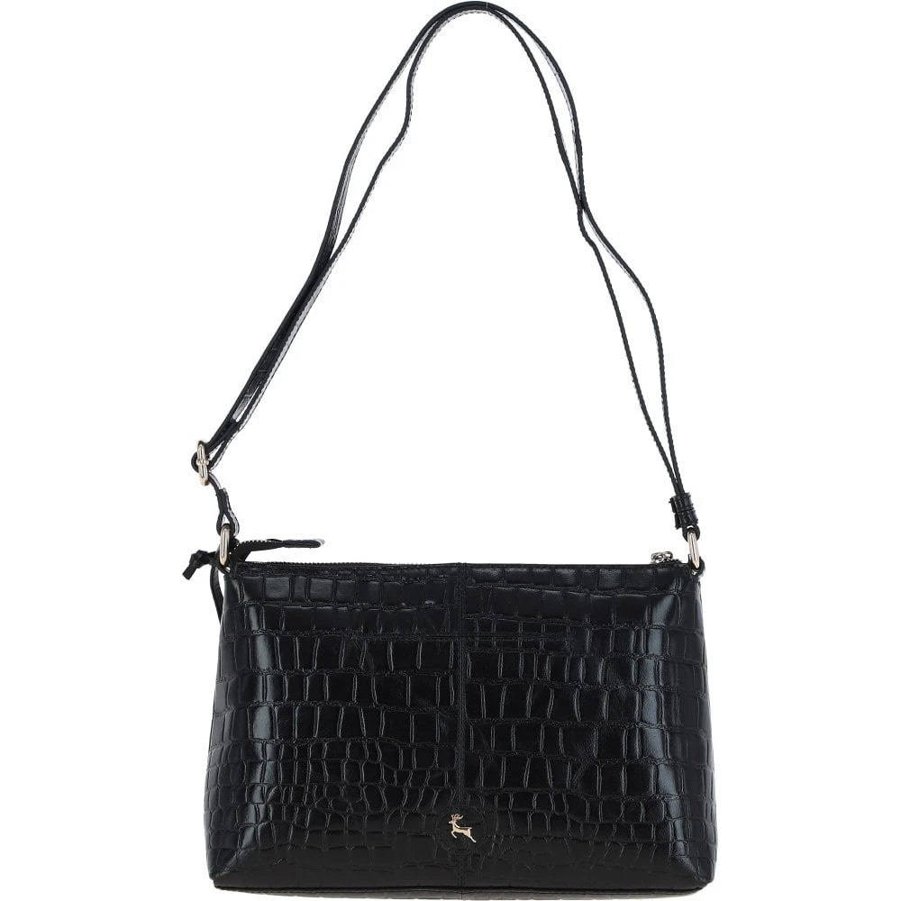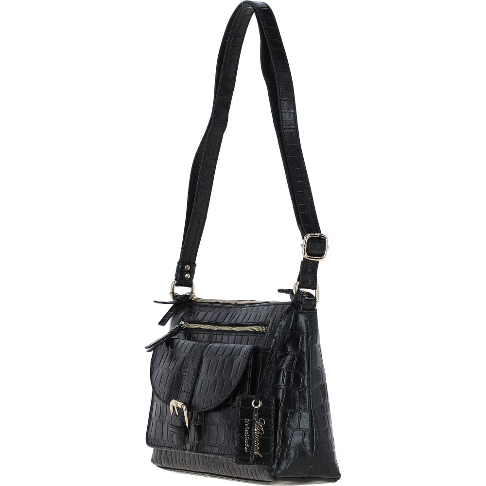 Women’s Leather Shoulder Handbag Black/croc: 63786