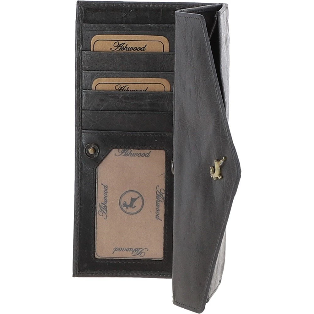 Women’s Vintage Wash Large 12 Card Leather Purse Grey: G-43