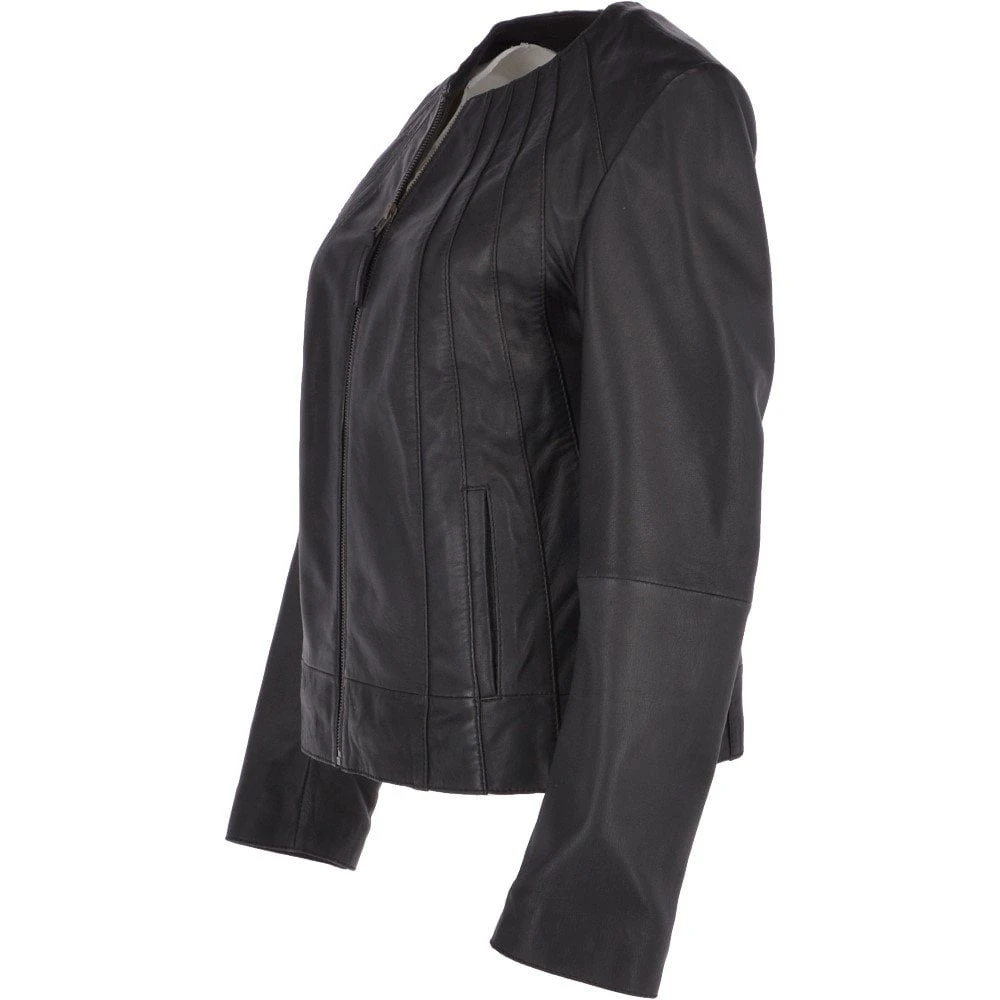 Exclusive to Leather company, this collarless women’s leather jacket is a must have wardrobe essential. A sleek take on a perennial classic. Clean lines, attention to detail. Structured and elegant cut in a beautiful soft nappa leather, designed with a feminine fit to enhance your silhouette.