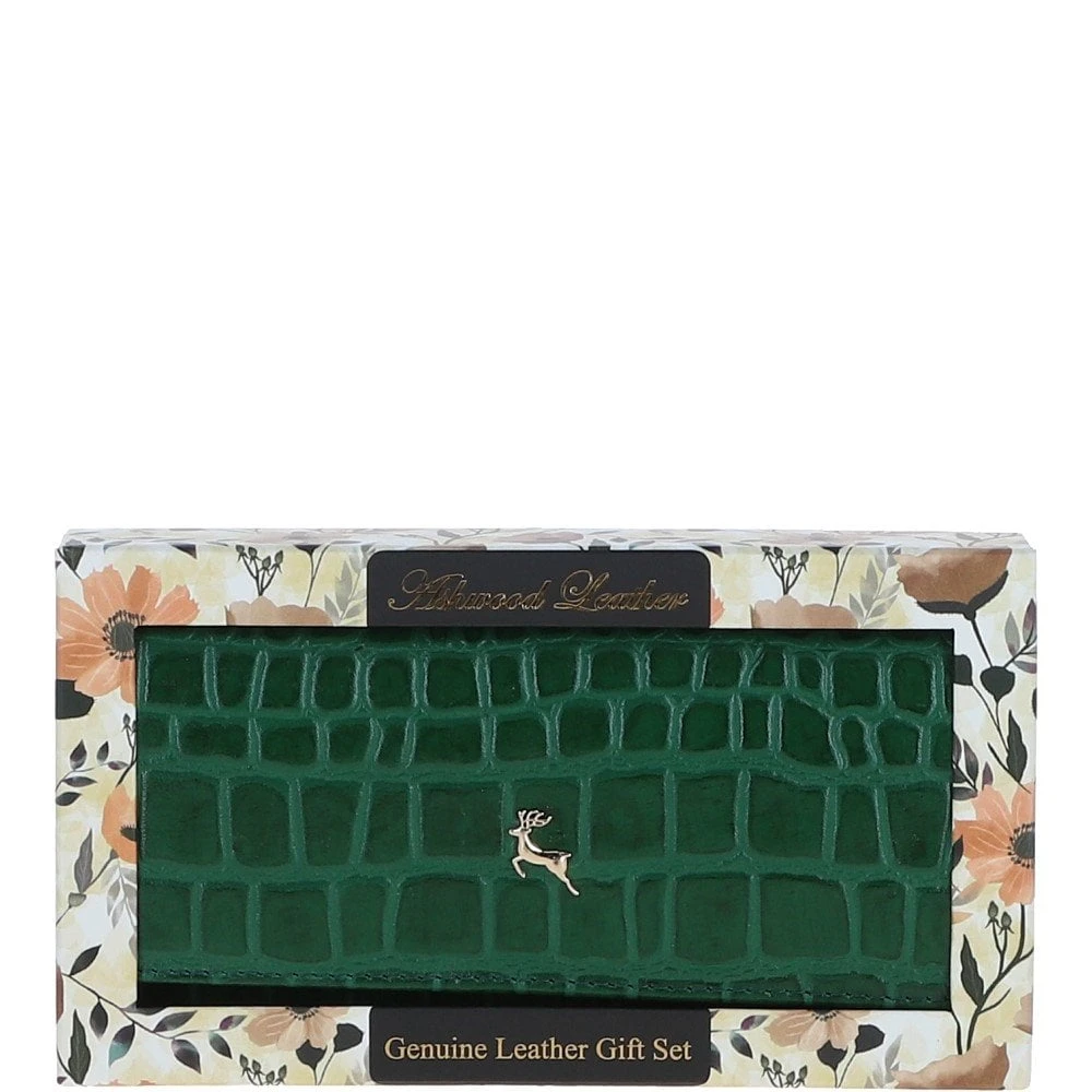 Ashwood Womens Croc 7 Card Large Leather Purse Green: C-05