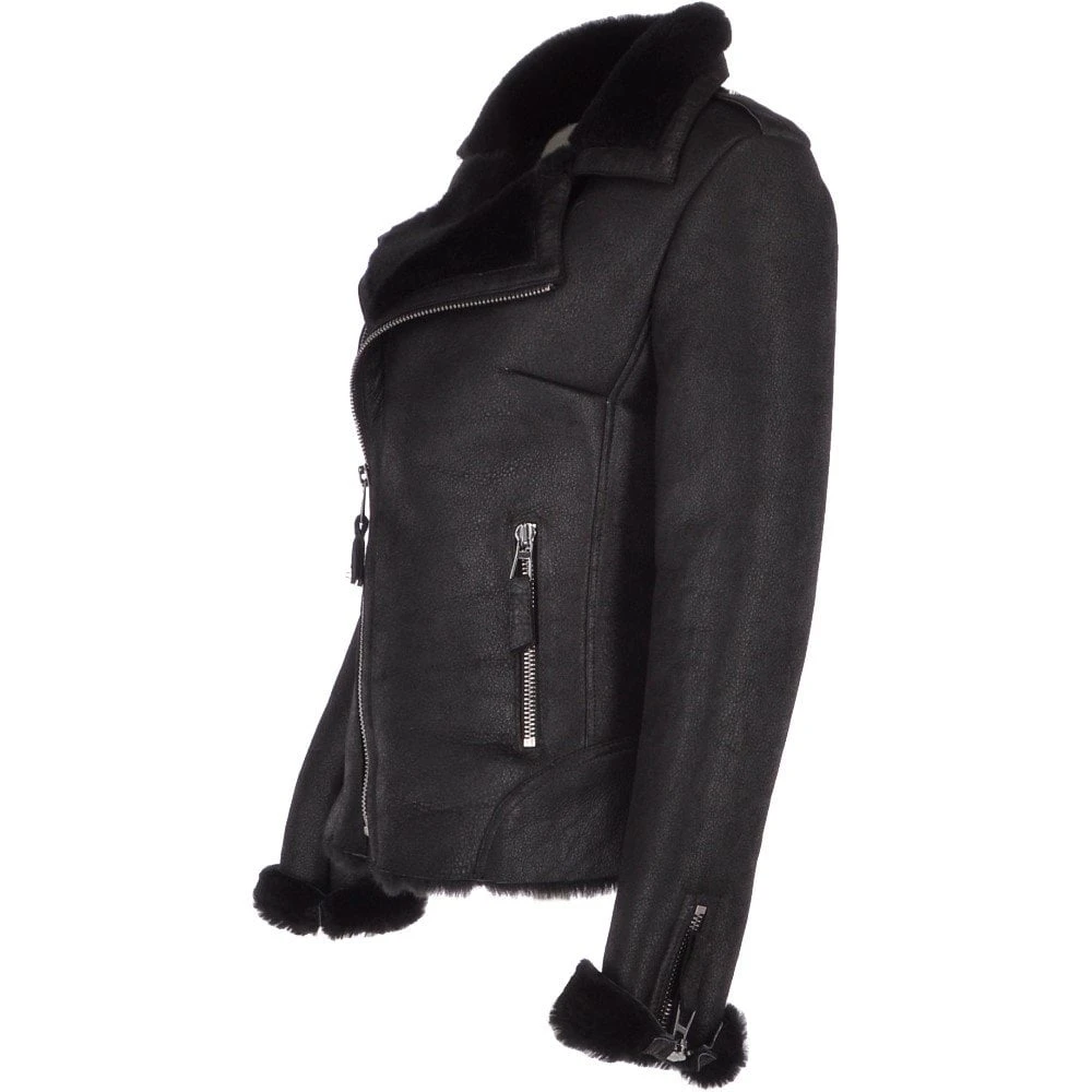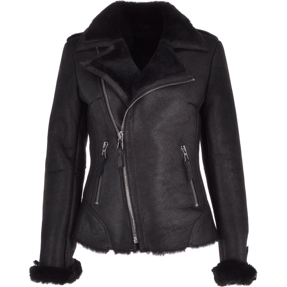 Womens Luxury Shearling Jacket Black/blk: Alayna