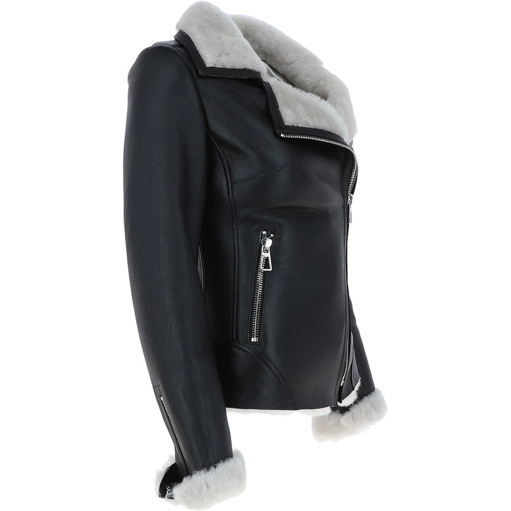Womens Luxury Shearling Jacket Black/white: Alayna