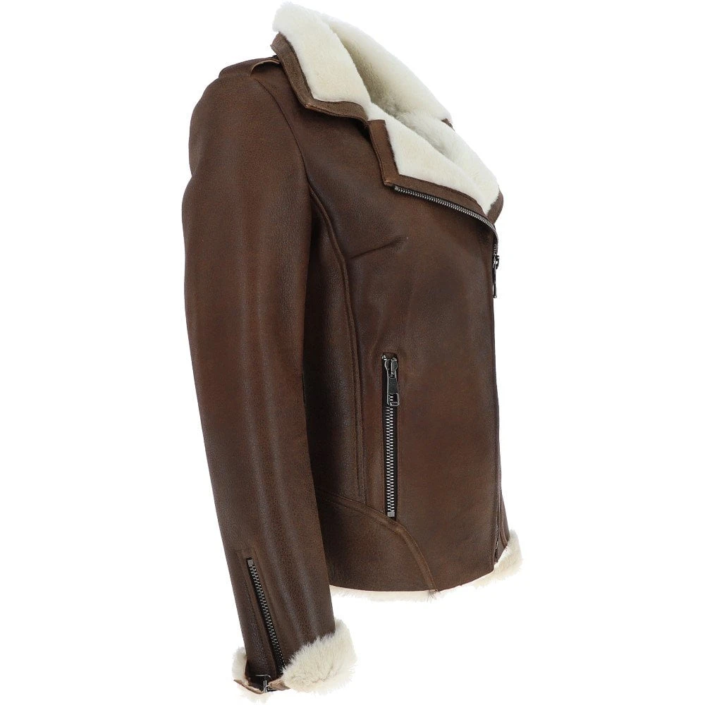 Womens Luxury Shearling Jacket Tobacco/Cream: Alayna