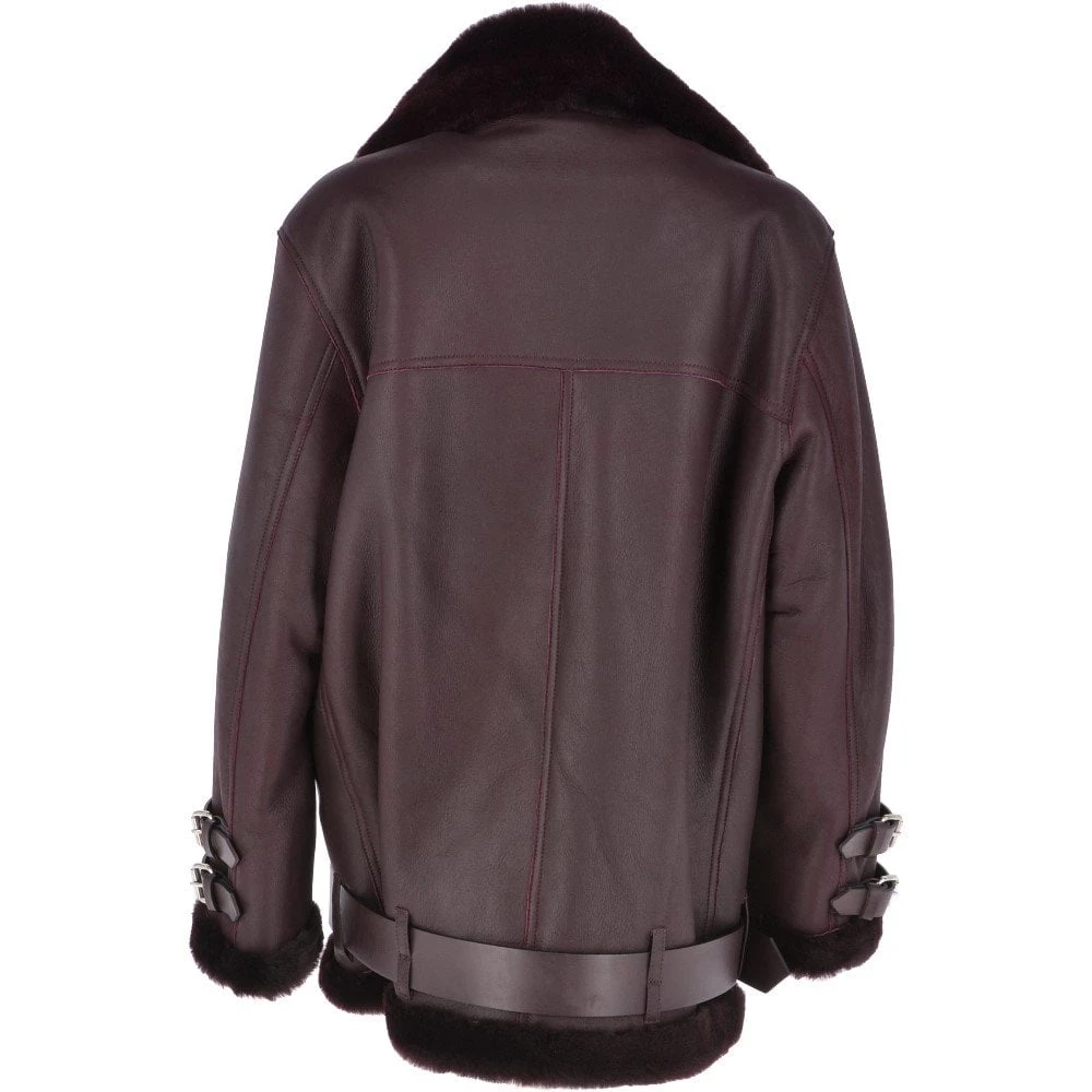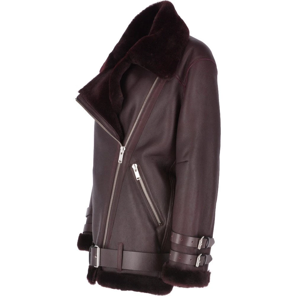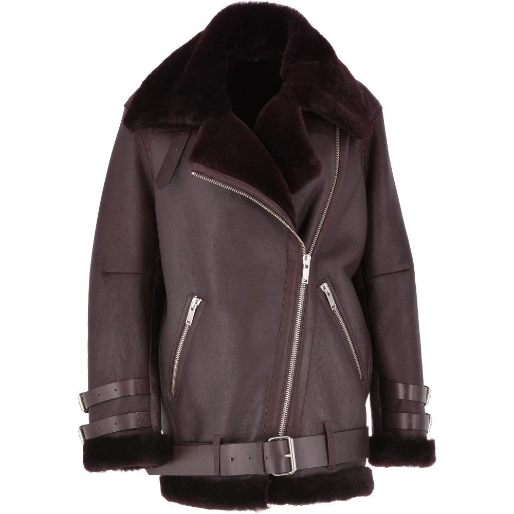 Womens Oversized Sheepskin Flying Biker Jacket Bordeaux : Khloe