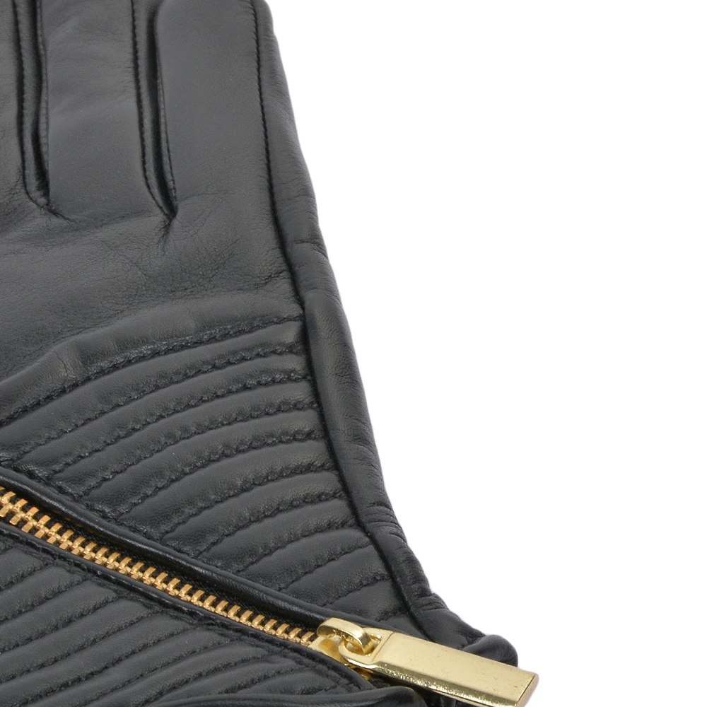 Women’s Zip Detail Leather Gloves : 373