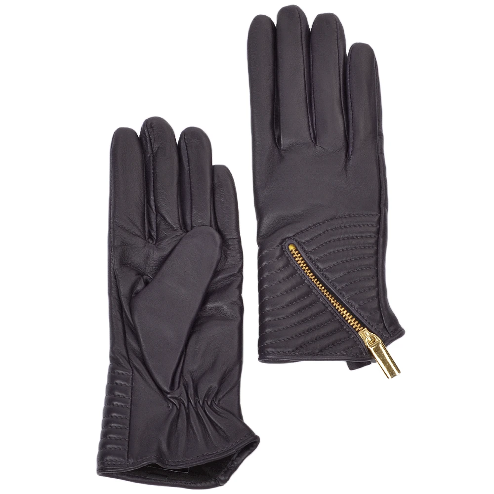 Women’s Zip Detail Leather Gloves : 373
