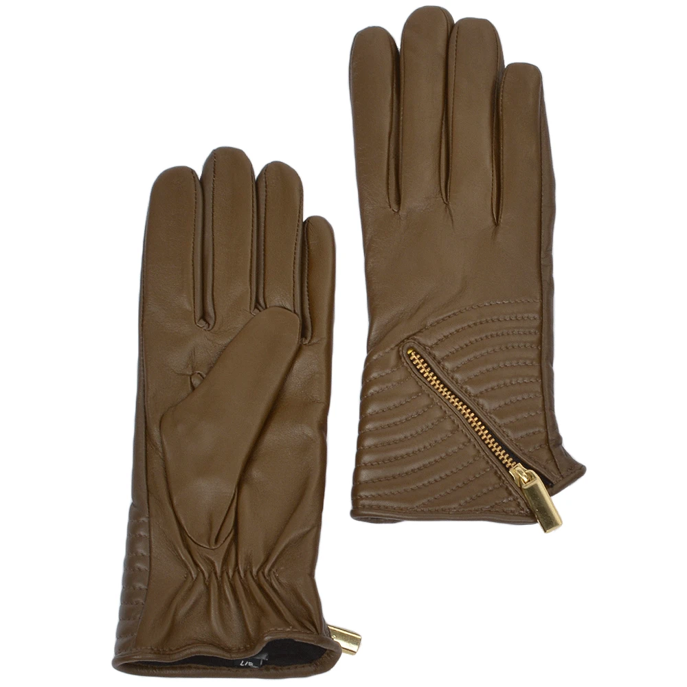 Women’s Zip Detail Leather Gloves : 373