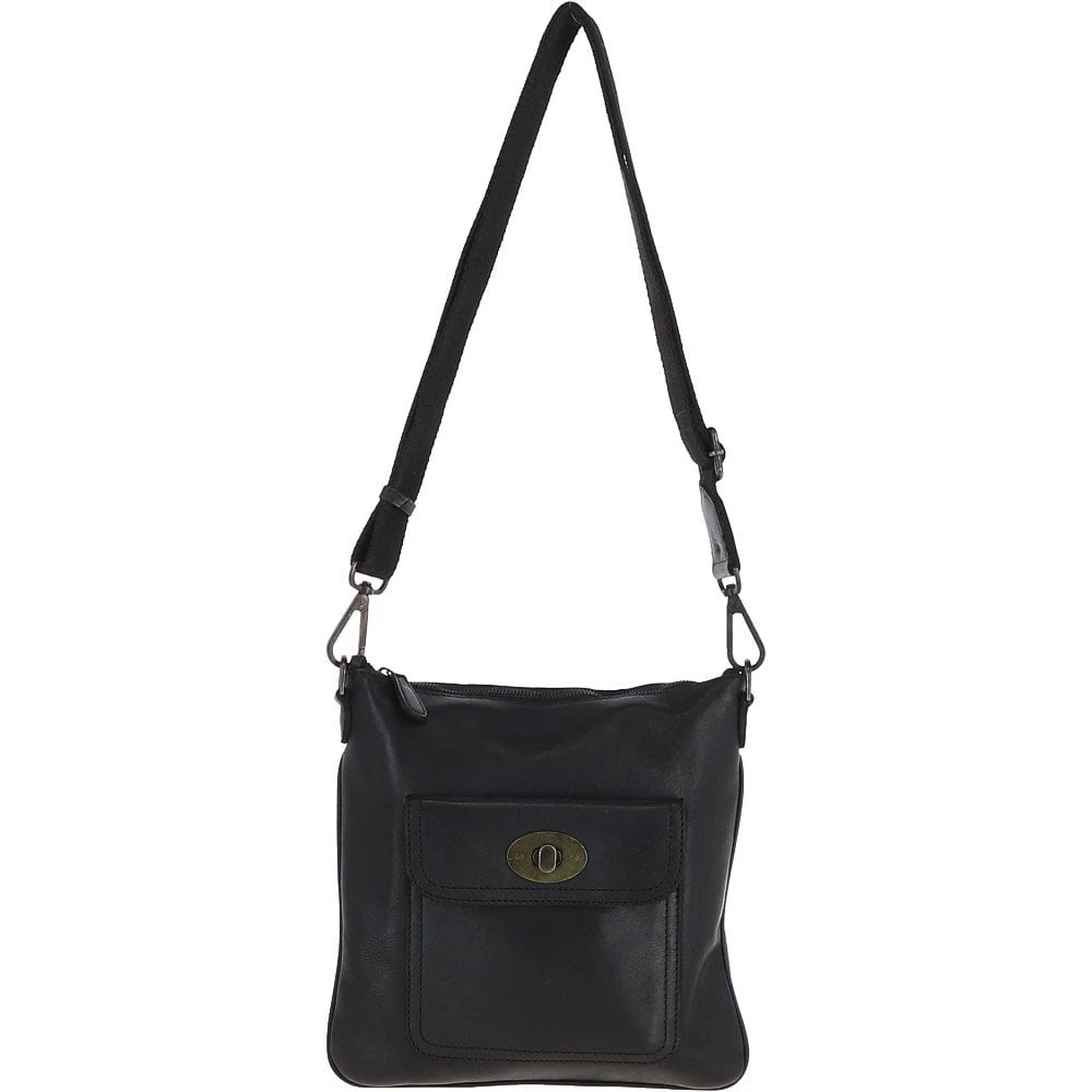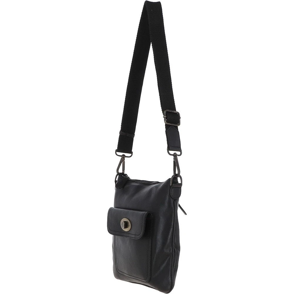 Zip Top Dipped Leather Pocket Cross Body Bag Black: R-10