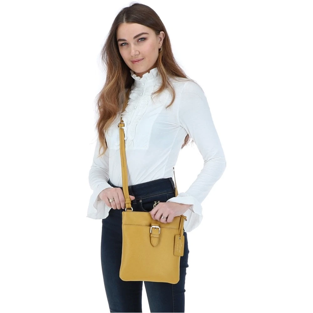 Ashwood Zip Top Leather Cross Body Bag Yellow: SB Buckle