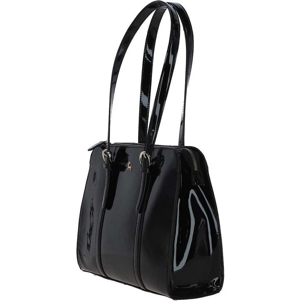 Ashwood Zip Top Patent Leather Handbag Black: A4 Buckle